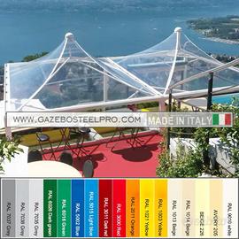Il telo del gazebo è in PVC ad alta densità con grammatura pesante di 650 g/m2, ignifugo certificato Classe 2.