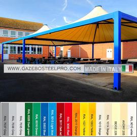Il gazebo è ideale per superfici commerciali esterne, padiglioni estivi per alberghi, bar, parcheggi, magazzini, manifestazioni fieristiche e sagre, feste popolari, chioschi, celebrazioni, matrimoni, eventi, associazioni, sit-in, box, ecc. È corredato di tutte le certificazioni necessarie per l'uso pubblico e privato.