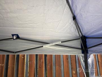 Vendo struttura gazebo pieghevole, ottimo stato. Facile da montare e smontare, si apre e si monta la tenda blu.