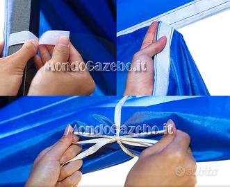Pareti laterali: indipendenti, impermeabili, antivento, sigillate con ampio velcro lungo TUTTO il bordo di contatto sia tra telo tetto e parete, che tra una parete e l'altra