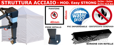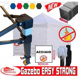 In commercio non esiste un gazebo pieghevole con queste caratteristiche ,piantone in acciaio da ben 40x40mm , fornisce una stabilità e solidità eccezionali , telo di qualità superiore OXFORD ad alta densità filare con rivestimento in PVC e cuciture termosaldate.