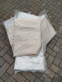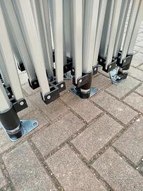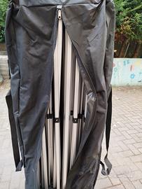 Nuovo gazebo pieghevole in alluminio anodizzato, misura mt. 3x6 con teli laterali Écru impermeabili; dotato di porta con cerniera e telo con ampia finestra. Tutti i teli sono ancora piegati e il gazebo non è mai stato adoperato.