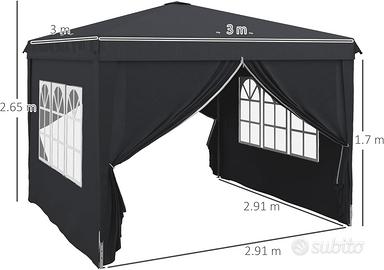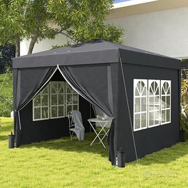 Gazebo Pieghevole Elegante Nero 3x3m con Telo Impermeabile - Consegna Veloce