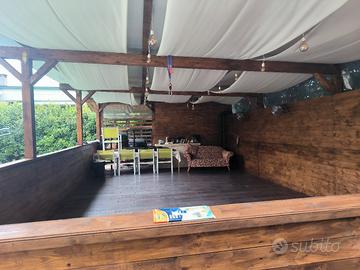 vendo bellissimo gazebo in legno con tetto coibentato da 6cm. le misure del gazebo sono 5x9 mentre il tetto è di 6x9. installato nuovo lo scorso anno per la modica cifra di 25000euro. lo vendo a 10000 . ci rendiamo disponibili per un aiuto nello smontaggio e se in zona anche per il trasporto