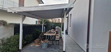gazebo in legno bianco, misure 2.5 mt x 4.5mt, con telone, smontaggio a carico del compratore