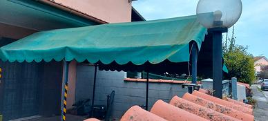 Vendo per inutilizzo e per trasferimento altrove,Gazebo come in foto. Il telo è fatto su misura, realizzato con lo stesso materiale utilizzo i camion da trasporto,molto resistente. Misura 3x5 mt il prezzo per struttura e telo è di 150 euro. Non perditemo, grazie