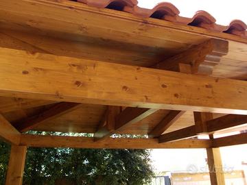 Gazebo in legno lamellare molto robusto pilastri 20x20 perimetrale 12x 20 traversi 10 x16 completo di perlinato da 3,3 cm verniciato noce chiaro… come nuovo