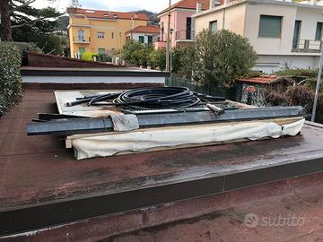 struttura superiore di gazebo in alluminio e telo da rivedere. TELAIO IN ALLUMINIO PER GAZEBO CON TELO DA SALDARE E/O DA SOSTITUIRE 3,30 x3,75 metri
