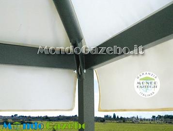 IL telo del gazebo è in PVC ad alta densità con grammatura pesante di 650 g/m2 ignifugo certificato classe 2.