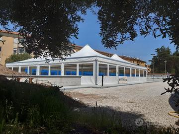 Gazebo Tensostruttura Nuovo modello Pagoda Roma Maxi da mt 12.00 x 12.00 x H 2.80 sottotrave con struttura in acciaio zincato e copertura in PVC 650gr/mq ignifugo classe 2.