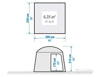 Gazebo quadrato con una superficie di 6,25 m² e un'altezza massima di 2,15 m.Altezza della porta: 1,70 m. Acquistato luglio 2025 utilizzato 4 giorni. Come nuovo,vendo per cambio progetto.