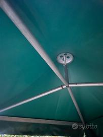 Gazebo 2,5mt x 2,5 mt. Materiale molto resistente e strutturato. Vendo cosi come da foto, sporco ma senza buchi o rotture. Chiuso su 3 lati. Da smontare al momento della vendita, x questo il prezzo basso.
