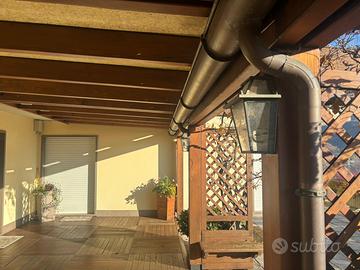 Vendo causa ampliamento casa gazebo 9,80 metri per 3,80 metri in ottimo stato. Pavimento in legno telo coprente motorizzato pluviali in rame. C e la possibilità di ridurlo di dimensioni eliminando parti.