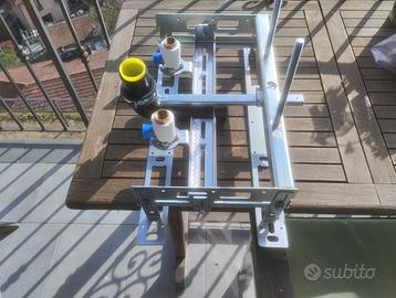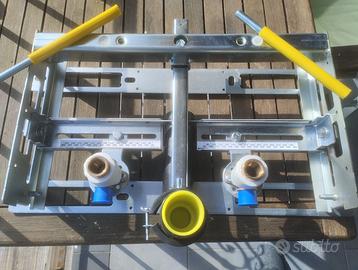 modulo installazione in acciaio inox per bidet sospesi su muratura Geberit Combifix misure 55x36x12 • Tipologia:modulo per installazione bidet sospesi su pareti in muratura; • Marchio:Geberit; • Materiale:acciaio inox; • Codice Geberit:457.892.00.1; • Per pareti in muratura; • Per il montaggio in installazioni applicate davanti alla parete ad altezza parziale o totale; • Profondità di montaggio regolabile,12–16 cm; • Distanza dei fissaggi bidet sospeso 18 cm o 23 cm; • Fissaggio del bidet regolabile in altezza; • Fissaggio per curva tecnica regolabile in altezza e isolato acusticamente; • Fissaggi del rubinetto regolabile in larghezza e in altezza; • Telaio di montaggio zincato; • Telaio di montaggio rivestito con quattro flange di fissaggio;