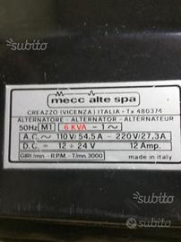 Vendesi gruppo elettrogeno assemblato artigianalmente in maniera solida, composto da: motore diesel Lombardini da nove cavalli con avviamento a strappo. Alternatore Mec alte con capacità di carico di sei kw a 220 volt, caratteristiche visibili in foto. Telaio in metallo predisposto per il montaggio di ruote per facilitarne il trasporto, o di sospensioni per smorzare le vibrazioni nel caso di posizionamento fisso. Trasmissione a doppia cinghia. Voltimetro e presa di corrente a norma. L'oggetto è in ottime condizioni, e stato usato solo a scopo domestico ed ha all'attivo soltanto 60 ore di lavoro, gestisce con disinvoltura qualsiasi carico all'interno dei limiti di potenza. Vendo per inutilizzo e valuto scambi solo con auto Smart diesel. Per info preferisco il contatto telefonico solo dopo le ore 20:00.
