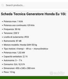 Vendo generatore portatile Honda Eu10i nuovo ancora imballato per inutilizzo . Visibile e vendita presso Cecar Nautica Genova.