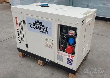 Generatore di corrente diesel monofase trifase 230V - 380V - 12V silenziato, potenza 10 kW/11KVA. Specifiche tecniche: Motore: Diesel monocilindrico 4 tempi Accensione: Elettrica a batteria Potenza Massima: 10kW Frequenza: 50Hz Regolatore di Tensione: Automatico (AVR) Sistema di Raffreddamento: Aria forzata Serbatoio: 15L Peso: 185kg Rotazione Motore: 3000 giri al minuto Display: Digitale (Conta ore e Voltimetro) 2200€ + IVA