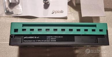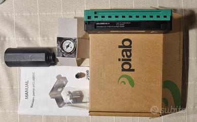 Generatore di vuoto Piab piCLASSIC Si x1 (codice prodotto: PCL.S1BN.S.08D.SV, Art no: 9904047). In vendita con confezione originale non più sigillata Si tratta di una pompa a vuoto pneumatica che utilizza la tecnologia multistadio COAX® per generare vuoto in modo efficiente utilizzando aria compressa. La serie "Si" è specificamente progettata per applicazioni che richiedono un extra flusso di vuoto, rendendola ideale per la manipolazione di materiali porosi o in presenza di perdite nel sistema Caratteristiche Tecniche Principali •Pressione di alimentazione max: 0,7 MPa (101 psi), come indicato sull'etichetta del dispositivo. •Pressione di alimentazione ottimale: 0,6 MPa (87 psi). •Vuoto massimo: -75 kPa (-22 inHg). •Configurazione: Modello con 1 cartuccia COAX® MIDI Si32-3 Configurazione modulare che include: •Connessione per il vuoto tramite attacco rapido (push-in) da 8 mm o filettatura NPT da 3/4". •Include un silenziatore (S) e un vacuometro (V). Il design modulare consente di aggiornare facilmente la capacità della pompa aggiungendo ulteriori cartucce (fino a un massimo di 6) se necessario per l'applicazione Spedizione in doppio pacco anonimo.