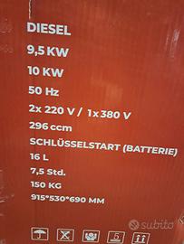 Generatore Erdmann modello ER10000 Potenza 10 KW alimentato a gasolio Nuovo e perfettamente funzionante, avviato solo una volta. Prezzo 1800€