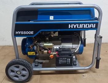 Generatore di corrente carrellato HYUNDAI HY5500E. Potenza massima Monofase: 5.8 KW Potenza continua Monofase: 5.5 KW Carburante: Benzina (25l capienza serbatoio) Tensione: 230 V Frequenza: 50 HZ Avviamento: Elettrico Consumo: 1.63 Lt/h al 50% del carico Lunghezza: 730 mm Larghezza: 560 mm Altezza: 610 mm (Prezzo da concordare per eventuale spedizione)