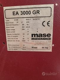 vendo generatore Mase 3 kw, usato pochissimo per le pompe sommerse quando diluvia, come nuovo. prezzo trattabile