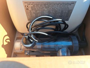 Vendo per mancato utilizzo GENERATORE SALINO DI CLORO E OZONO marca INTEX per piscine fuori terra Caratteristiche: 125 Watt di potenza Produzione di cloro massima 11 grammi/ora Produzione di Ozono 150 mg/ora