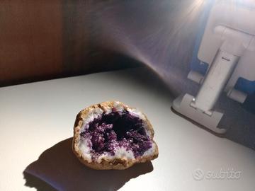 Geode di quarzo con cristalli viola in perfette condizioni ed è bellissimo da vedere, perfetto per chi vuole decorare la stanza in un modo naturale oppure per chi vuole collezionare minerali