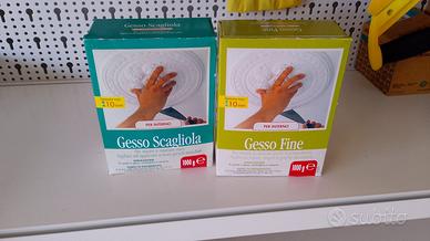 Vendo 3 scatole di gesso scagliola e 3 di gesso fine per interno,da applicare su pareti in gesso,cartongesso e cemento.ogni scatola 1 kg.Gesso scagliola per riparare muri e sigillare.Gesso fine per riparare buchi screpolature,e applicare meglio angoli e greche decorative. Confezioni mai aperte, rimanenza di una ferramemta