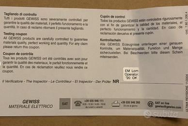 ATTUATORE ON/OFF E PER TAPPARELLE - 6/12 CANALI - 8AX - COMANDO MANUALE - KNX - IP20 - 8 MODULI DIN Codice GWA9126 Marca Gewiss Nuovo nella sua confezione originale. Spedizione possibile MA NON SCEGLIETE POSTE ITALIANE, annullerò l'ordine per brutte esperienze pregresse. Info fornite dal produttore: Comunicazione KNX N. moduli DIN 8 Alimentazione Tramite bus KNX, 29 V dc SELV Interfacce KNX TP1 Assorbimento corrente bus KNX (mA) Max 10 mA (con alimentazione ausiliaria presente da 230 Vac) Potenza max dissipabile (W) 10 W N. canali in uscita 12 Contatti di uscita 12 NA 8 AX 230 V ac Morsetti di cablaggio A vite Capacità serraggio morsetti cavi flessibili (mm²)Max. 4 Connessione BUS KNX Morsetto BUS KNX Corrente MAX di commutazione (A) 8A (AC1) 8AX (140 μF rif. EN 60669-1) carichi fluorescenti con corrente massima di spunto 300A (150 μs) Lampade incandescenza-alogene 230V 1500 W Carichi pilotati da trasformatori toroidali 1200 W Lampade a basso consumo (fluorescenti compatte) 25x23W Lampade LED 230V 25x10W Motori 800 W Temperatura di funzionamento -5 ÷ +45 °C Temperatura di stoccaggio -25 ÷ +55 °C Grado di protezione IP20 Umidità relativa (non condensante) Max 93% Norma di riferimento Direttiva bassa tensione 2014/35/EU; Direttiva compatibilità elettromagnetica 2014/30/EU EN 50491, EN 60669-2-5