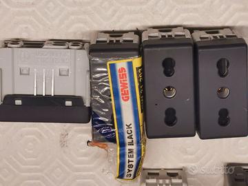 GEWISS SYSTEM BLACK 4-Presa bivalente 1-Ronzatore 12W 1-Pulsante unipolare 4-Interruttore 2-Falso polo 3-Placca TUTTO NUOVO MAI INSTALLATO