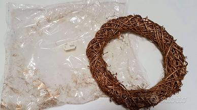 Vendo ghirlande in legno e vimini di diametri diversi, 2 verniciate in oro. Sono vintage ma mai usate e nell'originale confezione in plastica. Utili per creare addobbi e decorazioni per la casa. Il prezzo si riferisce al lotto completo di 4 pz ma posso venderle anche separatamente. Per info contattami.