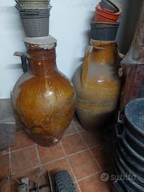 vendo n2 giare in terracotta pugliesi. la portata è di 2quintali e mezzo caduno. come si vede in foto una ha stampato il fiore sulla giara.