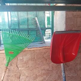 vendo vendo attrezzi da lavoro come decespugliatore taglia siepe svettatoio pala in plastica rigida con punta in acciaio rastrello in plastica largo rastrello in ferro per foglie o terreno varie forbici da pota telescopiche cuffia per decespugliatore bobine per decespugliatore triangolo quadrato Stella , due barre per motosega , olio per catena olio per miscela visiera con retina imbuti per miscela zaino antiparassitario e tante altre cose ancora unico prezzo blocco totale solo contatti WhatsApp o telefonici al numero 3500868309