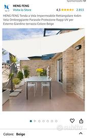2 Ombreggianti misura: 6 x 3. Mai usato. Ideale per creare zone d ombra parcheggi, terrazzi, balconi, corridoi. Color crema.Massima resistenza e waterproof. Svendo per inutilizzo