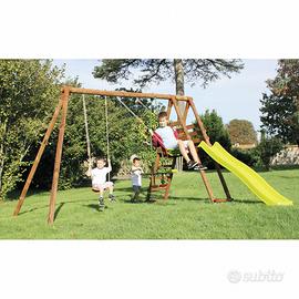 Dalle casette in legno per bambini ai tappeti elastici, dagli scivoli da giardino alle sabbiere, fino ai dondoli e tavolini.