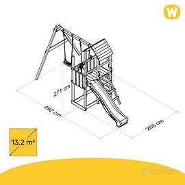 Gioco da giardino in legno scivolo e altalene
