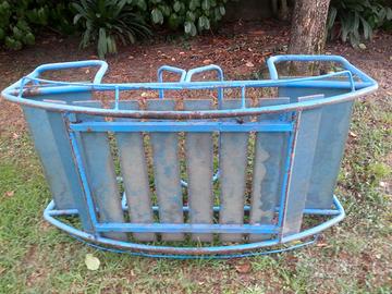 Vendo originale giostrina - dondolo probabilmente degli anni '70, in metallo tubolare di colore azzurro, con sedute e stecche in legno laminato (?) saldamente rivettate , a 2 o 4 posti ;