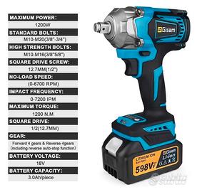 Gisam 1200NM Avvitatore a Percussione a Batteria Auto Avvitatore a Percussione