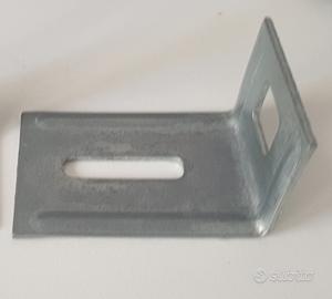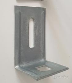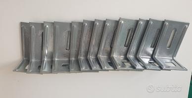Tredici giunzioni o staffe in acciaio in buone condizioni, ideali per sorreggere mensole, pensili anche da cucina o per giunzioni di tavole o pannelli di legno. Mis: 6 x 3 cm.