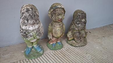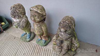 come da foto gnomi in cemento, così come conservati all'aperto, non puliti e spazzolati, visionabili di persona
