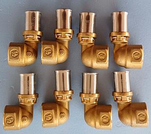 Vendo 8 pezzi Gomito Filettato Femmina 90° a Pressare - Misura 16 x 12 Giacomini. Sono inserzionati anche tutti gli articoli sotto elencati per tipo e quantità, e sono disponibili con sconto per acquisto in blocco per un valore di circa 2200 euro