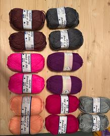 50 gomitoli di acrilico nuovi da 100gr nei colori esposti nelle foto più altri gomitoli già iniziati.