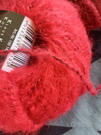 7 gomitoli di cui uno appena iniziato, un bel rosso vivo, composizione e metraggio in foto