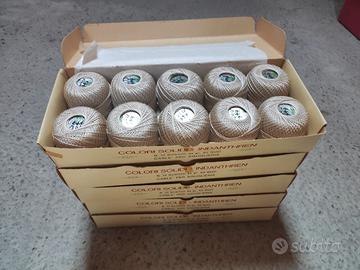 5 scatole contenenti 10 gomitoli di cotone x uncinetto colore écru marca 3 moretti. confezioni complete mai utilizzate. non spedizione ma ritiro a mano
