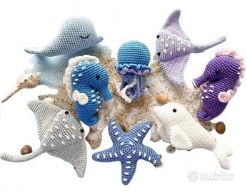 Gomitoli Rotoli Filati Lana Uncinetto per Bambini con Istruzioni per realizzare Pesciolini. Kit per principianti. Beginner Crochet Set.