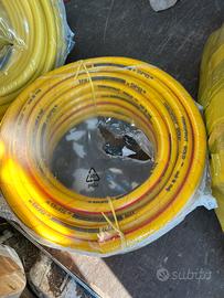Vendo tubo gomma per giardinaggio morbida professionale non da brico , gialla alimemtare , anti alghe ,20 atmosfere rotolo da mt25 €40,rotolo da mt50 €80 .Gomma nera o rossa 10 bar x la pressione , anti alghe, anti arrotola memento, rotoli da mt50 €100.Possibilita di spedizione