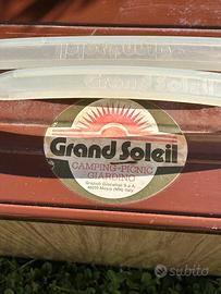 Tavolo valigietta pic nic anni 70 Prodotto da Grand Soleil 2 sgabelli e due seggioline pieghevoli con struttuta in metallo Nonostante i suoi 50 anni è ancora in ottimo stato Una simpatica idea regalo orr gli amanti del vintage.