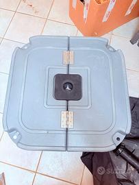 Vendo grande base robusta per ombrellone da giardino, ideale per esterni. Include una pratica borsa per il trasporto.