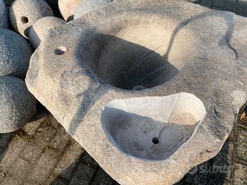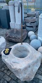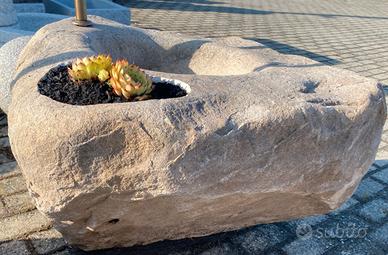 E' ricavata da una antica vasca di granito naturale autentica. NON è di cemento, graniglia o polvere di marmo, non soffre il gelo.