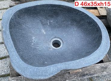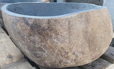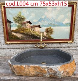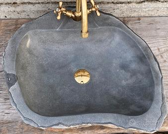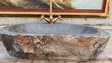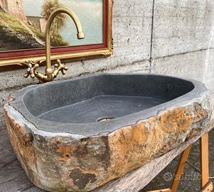 Grande lavabo monoblocco rustico, scavato da un blocco di basalto naturale, ideale per bagno rustico di lusso.
